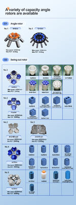 - Controle por microcomputador, acionada por motor de conversão de alta frequência sem poluição por pó para longa vida útil, vários rotores com suportes para tubos e adaptadores para suas diversas necessidades de separação. Grande display LCD ou LED de 0,8 para sua opção.