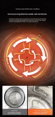 ● Automatic protection functions: over-temperature protection,over-pressure protection,low water level protection,anti-dry heating protection